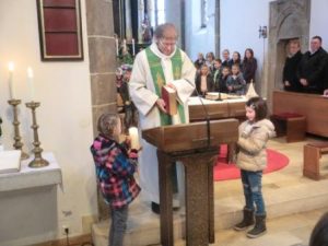 Mit diesem Lied haben 28 Kinder der 2. Klassen ihre Vorbereitungszeit auf ihr großes Fest, die Erstkommunion, gestartet. Der diesjährige Vorstellgottesdienst am 10. Februar 2019 stand unter dem Leitgedanken „Von vollen Netzen“ mit dem Evangelium vom reichen Fischfang.