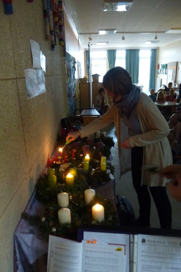 In der Adventzeit zündeten wir in der Klasse jeden Morgen die Kerzen am Adventkranz an, hörten eine Geschichte und ein Kind durfte den Adventkalender öffnen.