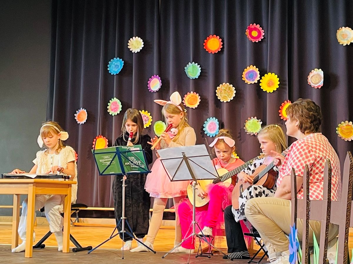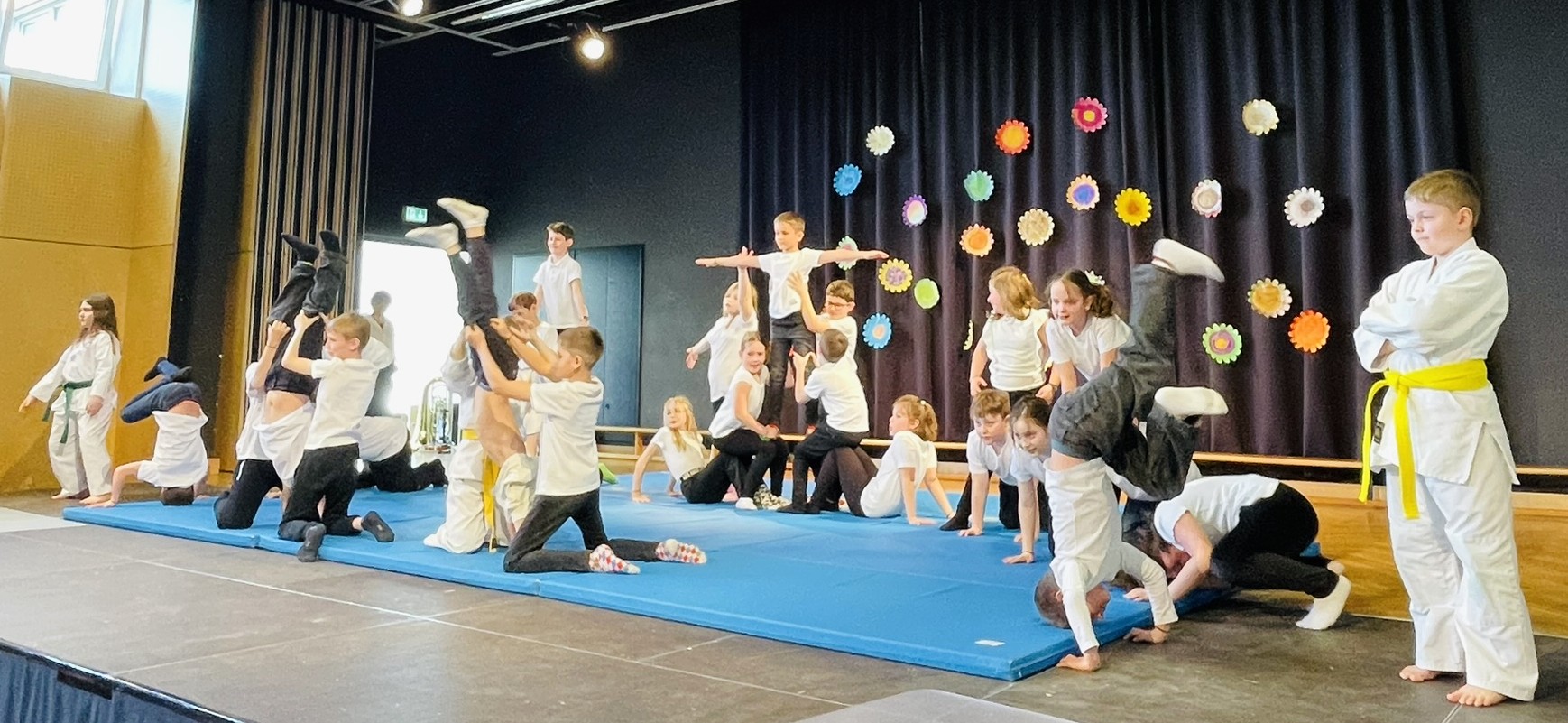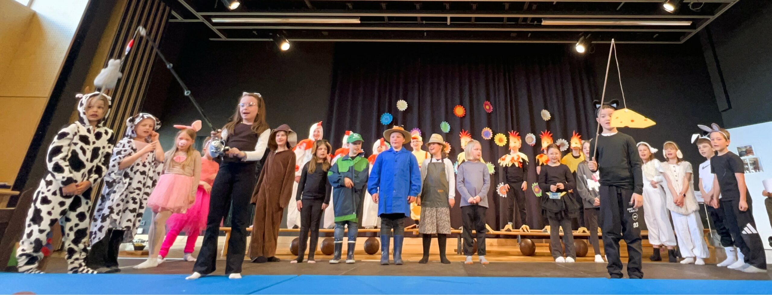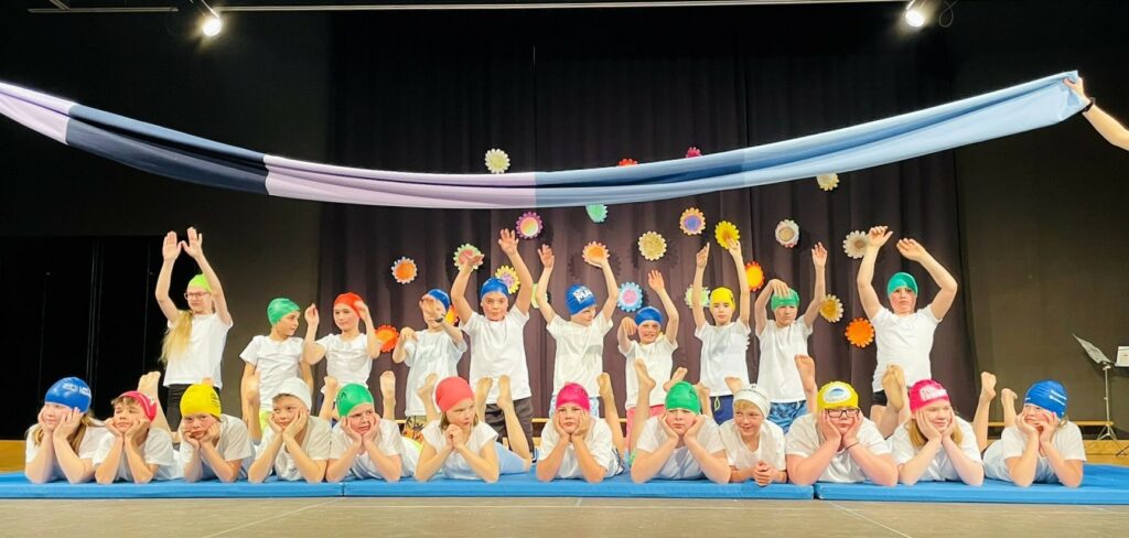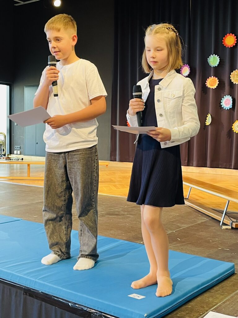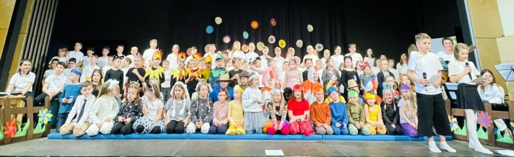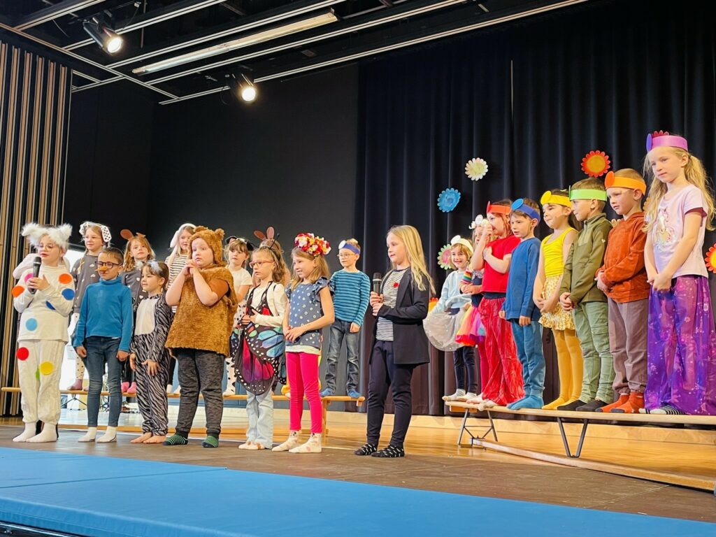 Nach der langen Vorbereitungszeit waren die Kinder nun froh und stolz ihren geübten Beitrag endlich auf der Bühne präsentieren zu dürfen.